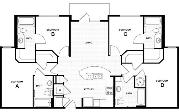 The gracious entry foyer leads to an open kitchen with custom stained walnut cabinetry, granite countertops, and a built-in dining banquette (in select one bedroom homes).